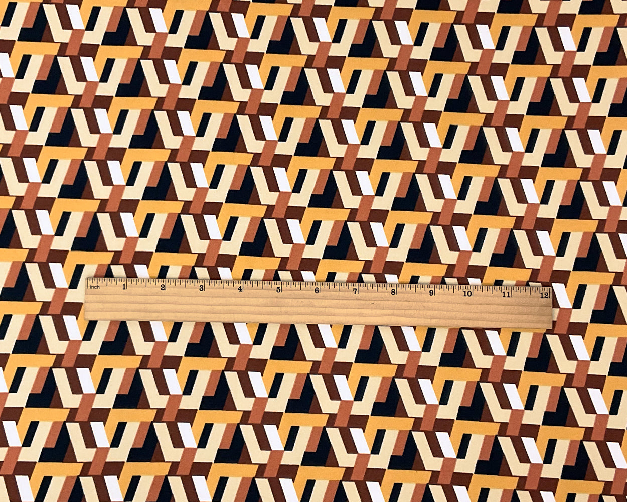 Brown-Multi Poly Spandex Stretch Geometric Printed Brush Jersey Knit Fabric
