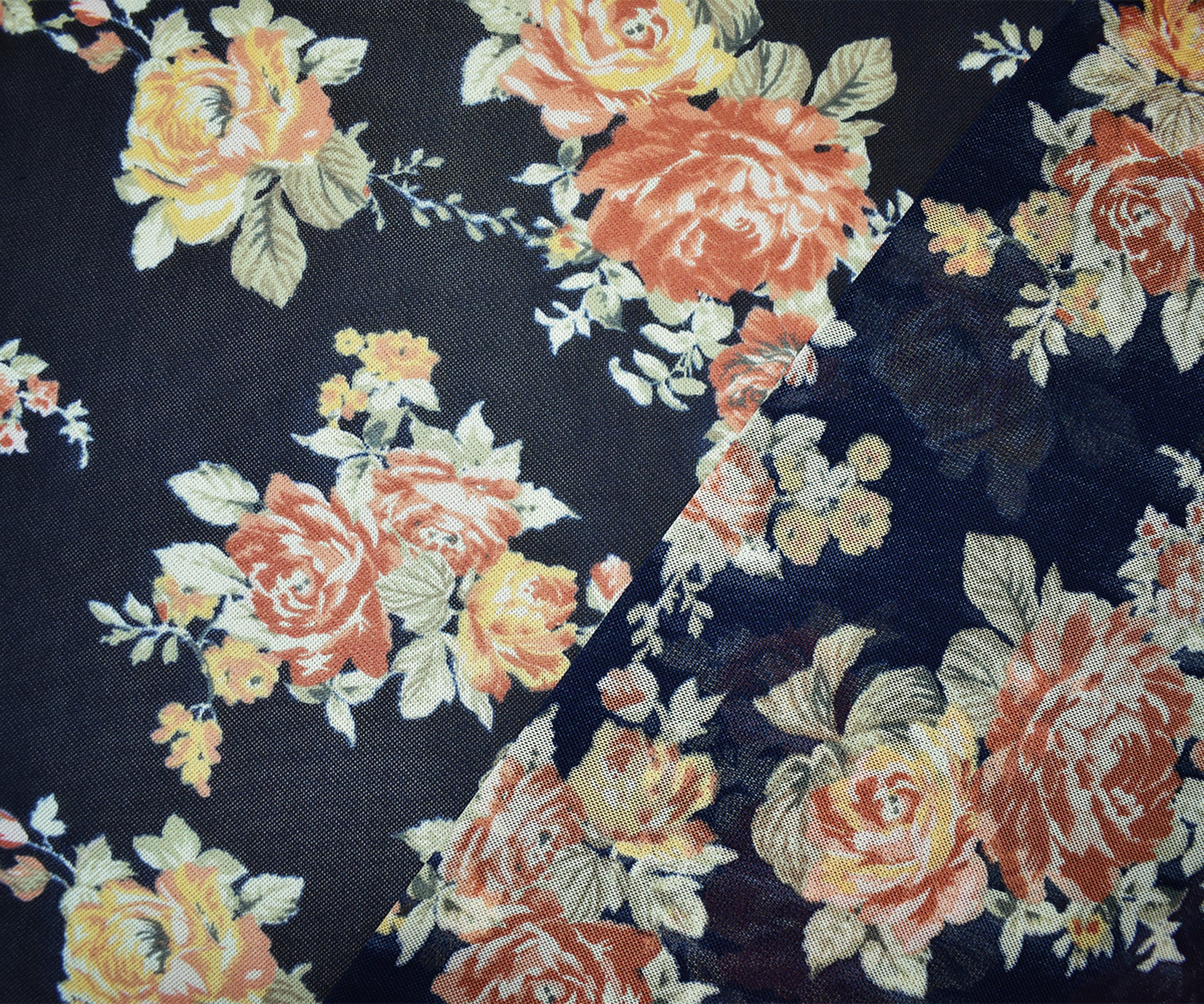 Deep Blue-Multi Poly Stretch Floral Printed Mesh Knit Fabric