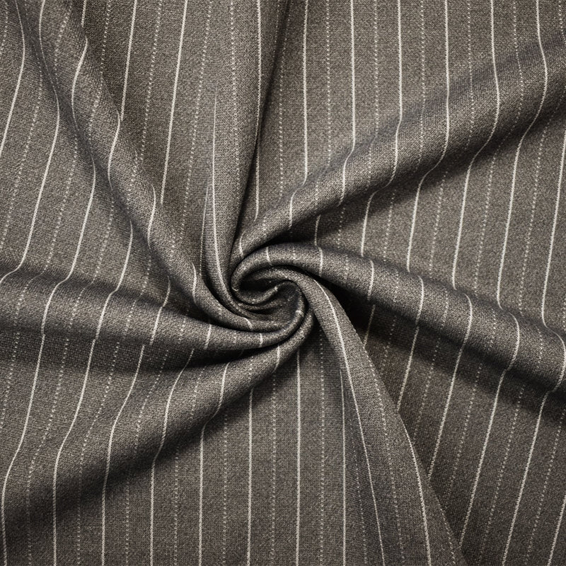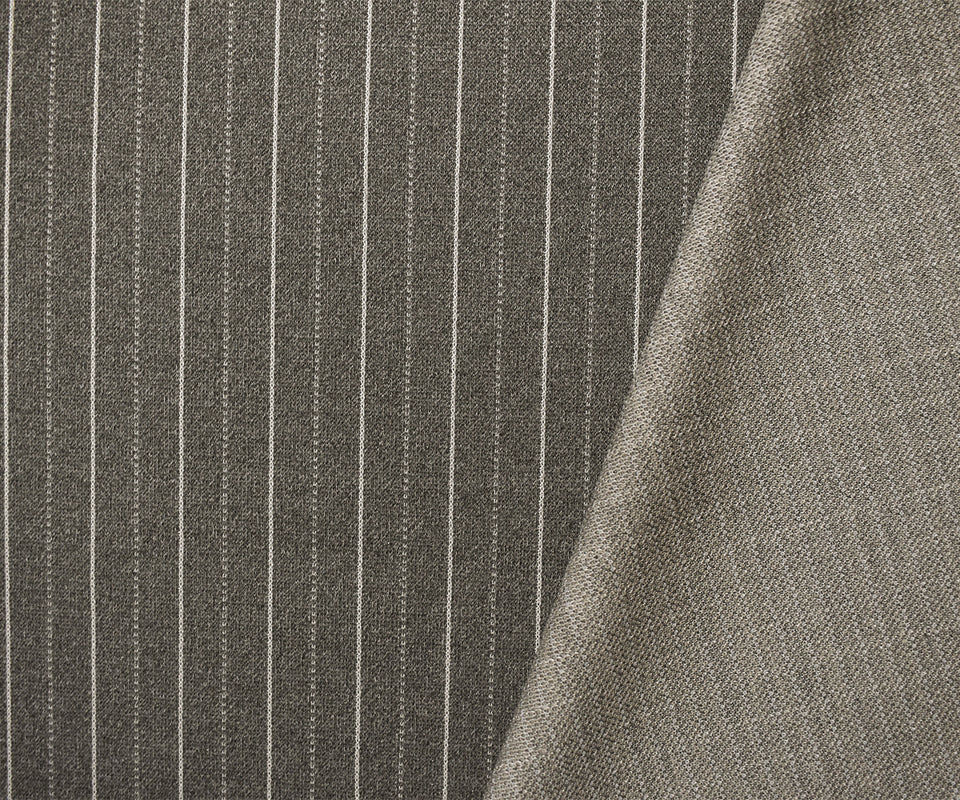 Gray-White Poly Wool Spandex Stretch Stripe Double Knit Fabric