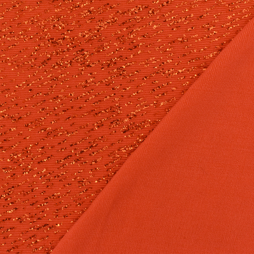 Intense Orange Texture Sparkle Metallic Printed Stretch Slinky Knit Fabric