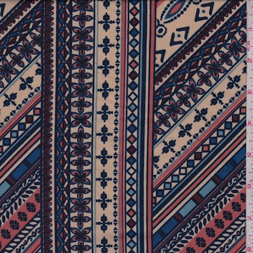 ITY Bisque/Navy/Plum Deco Tile Jersey Knit Fabric