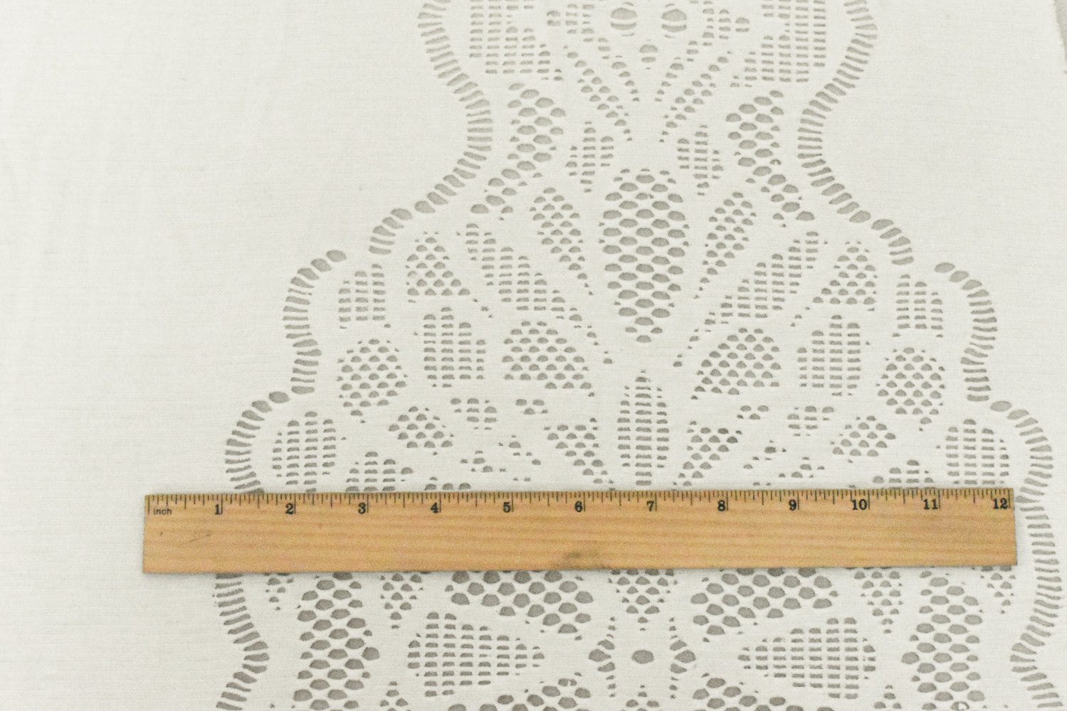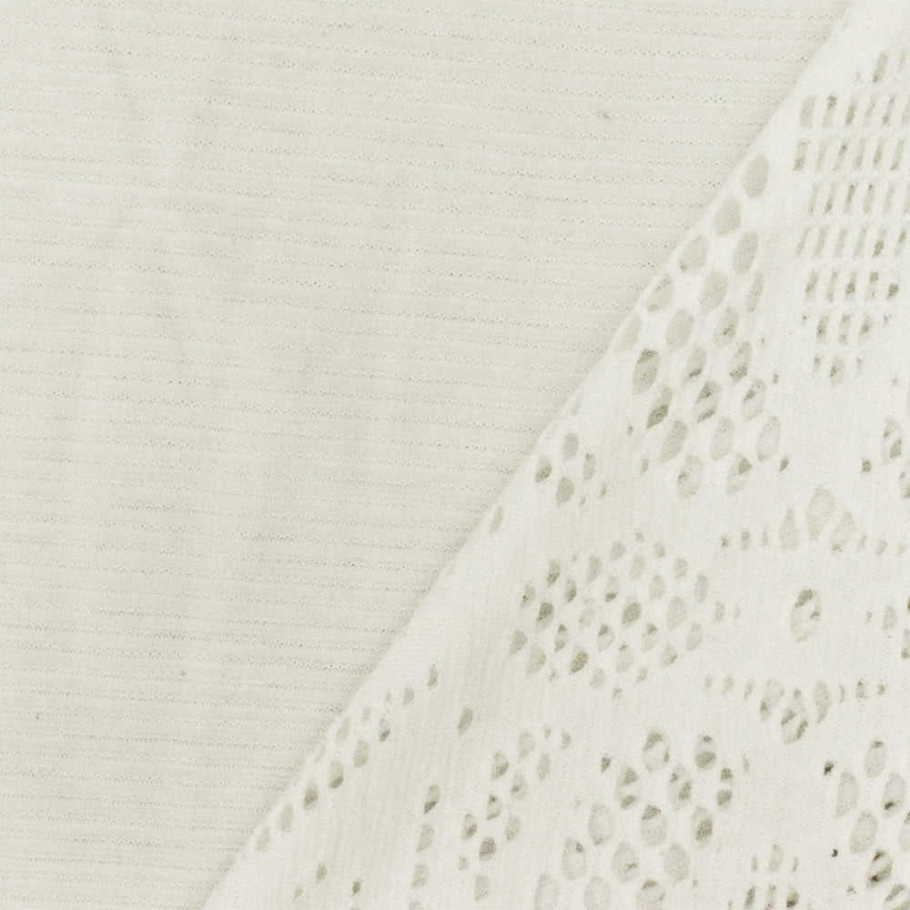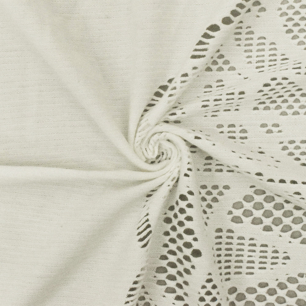 Light Ivory Floral Scallop Stretch Mesh-Lace-Like Knit Fabric