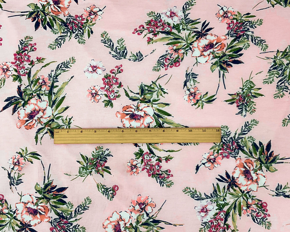 Pink-Green-Multi Poly Stretch Floral Printed Slub Knit Fabric
