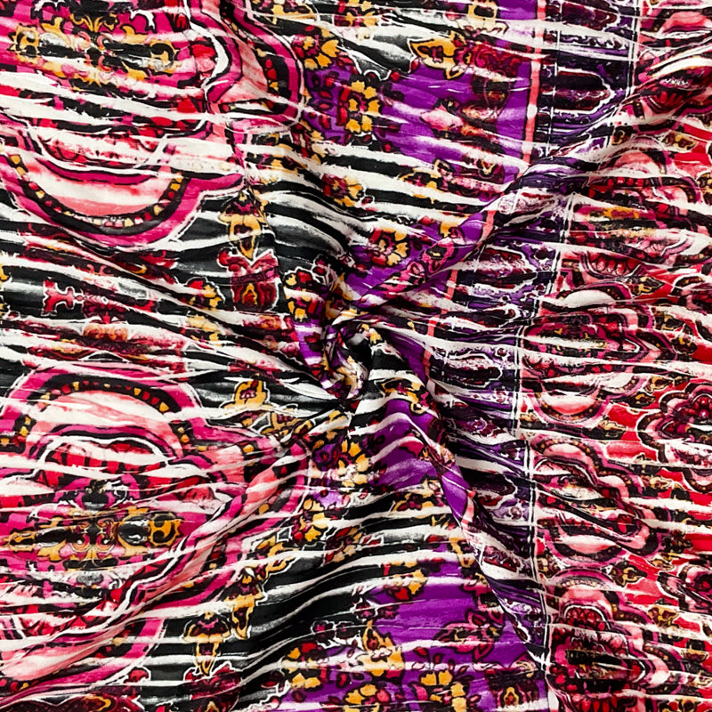 Red-Black-Multi Poly Medallion Border Printed Knife Pleat Knit Fabric