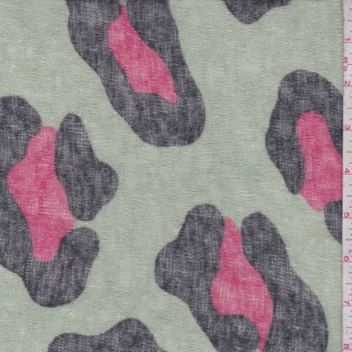Sage Green Cheetah Slubbed Sweater Knit Fabric