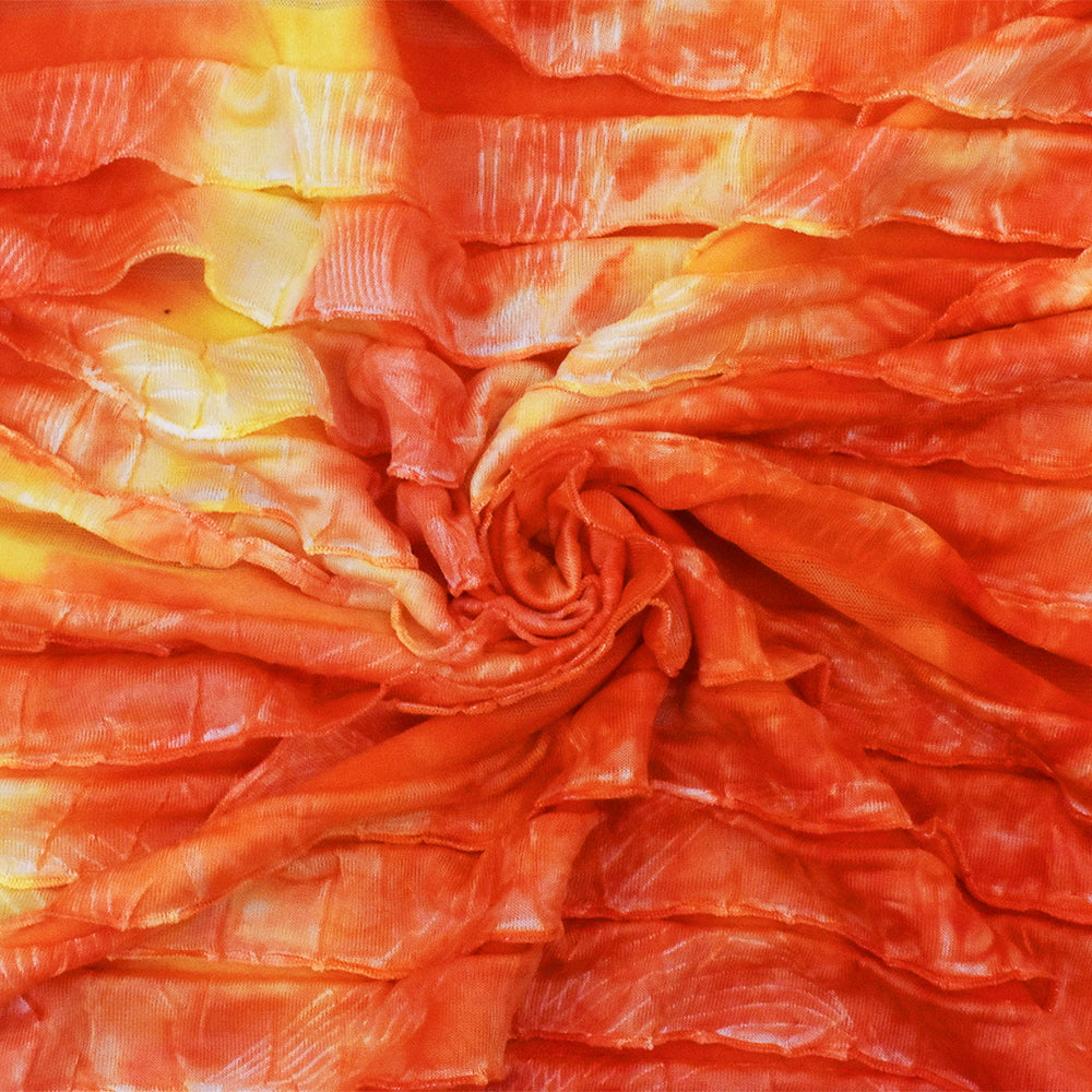 Sun Orange-Yellow-Multi Tie Dye Stretch Poly Ruffle Knit Fabric