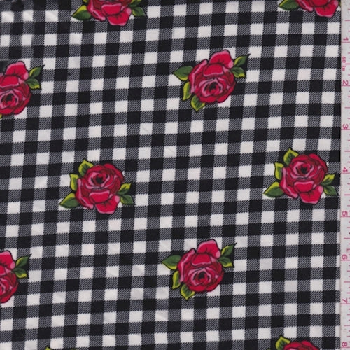 Black/White/Red Floral Check Double Brushed Jersey Knit Fabric