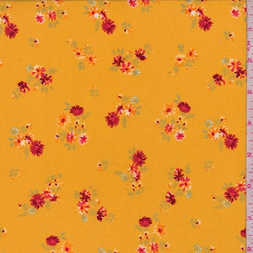Dark Gold Floral Cluster Double Brushed Jersey Knit Fabric