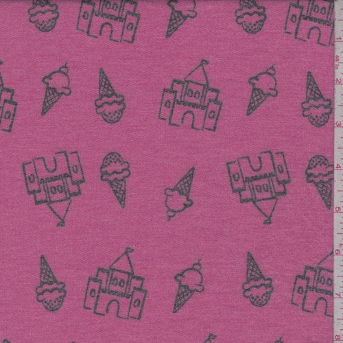 Dark Pink Ice Cream Castle Brushed French Terry Knit Fabric