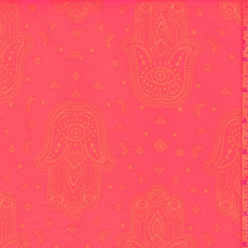 Day Glo Pink Henna Print Double Brushed Jersey Knit Fabric