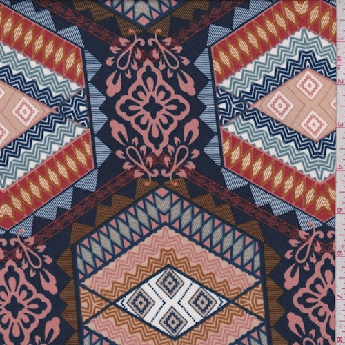 ITY Navy/Sienna Deco Medallion Jersey Knit Fabric