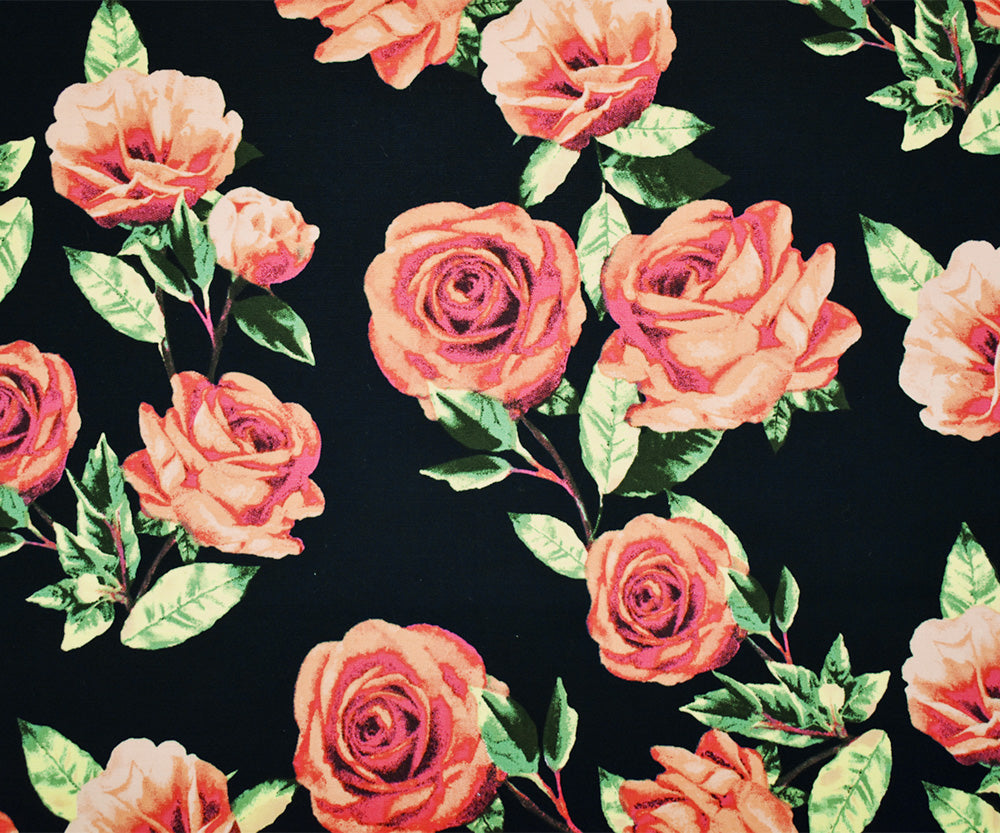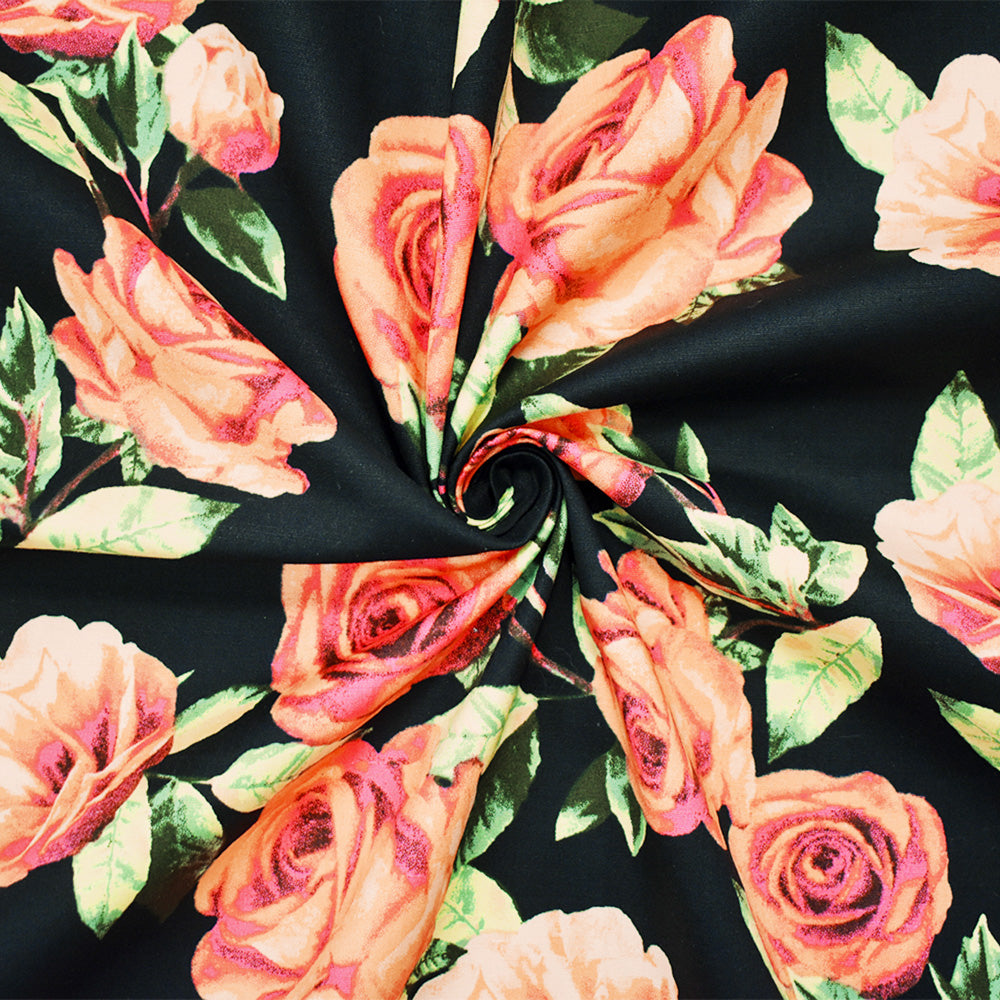 Black-Orange-Multi Cotton Stretch Spandex Floral Print Poplin Woven Fabric