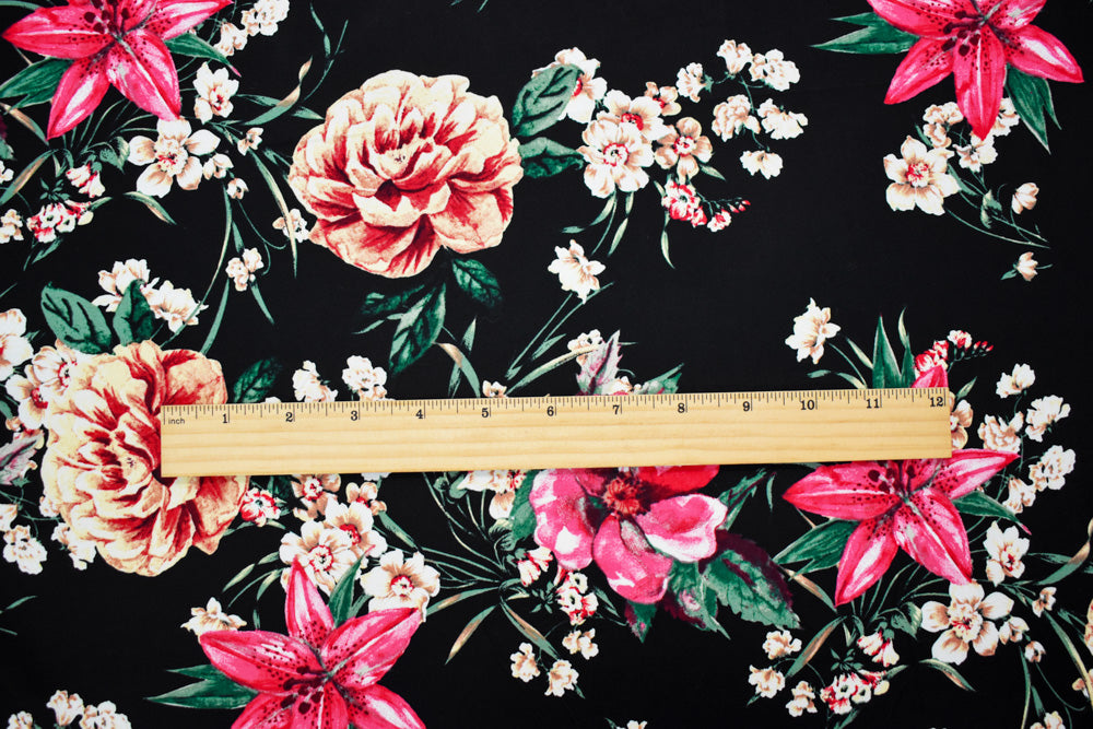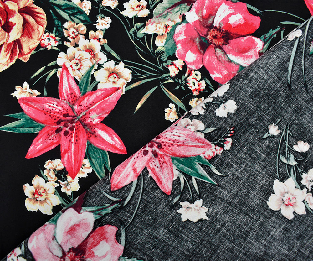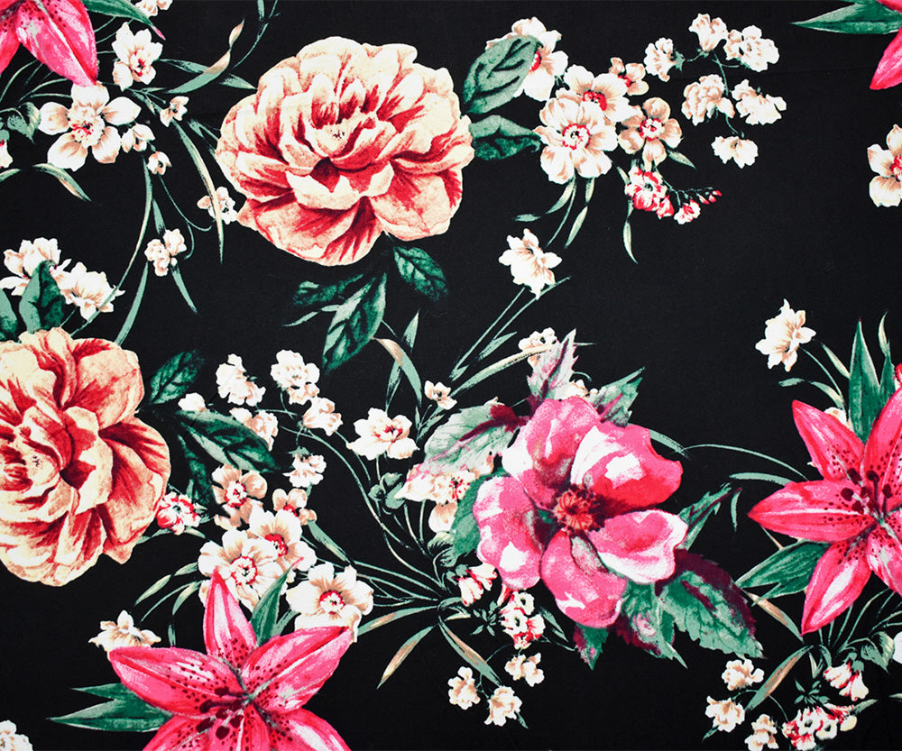 Black-Pink-Beige Cotton Stretch Spandex Floral Print Poplin Woven Fabric