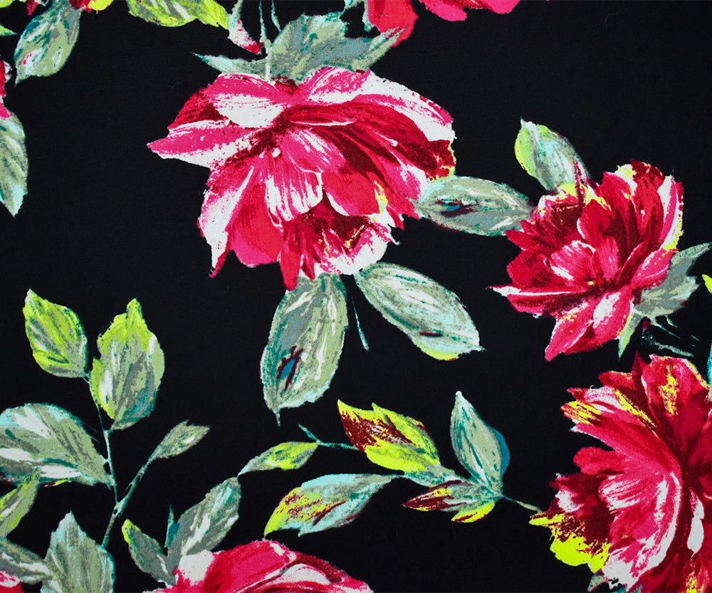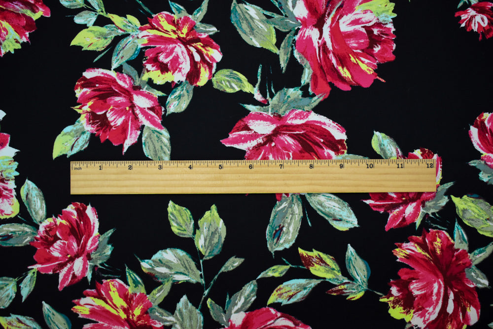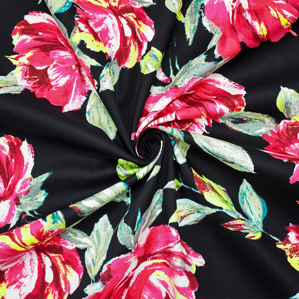 Black-Pink-Multi Cotton Floral Printed Stretch Spandex Poplin Woven Fabric