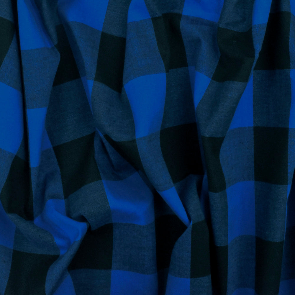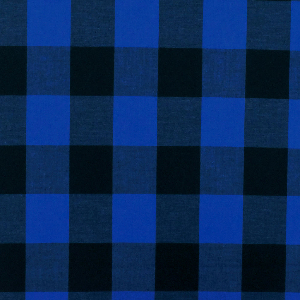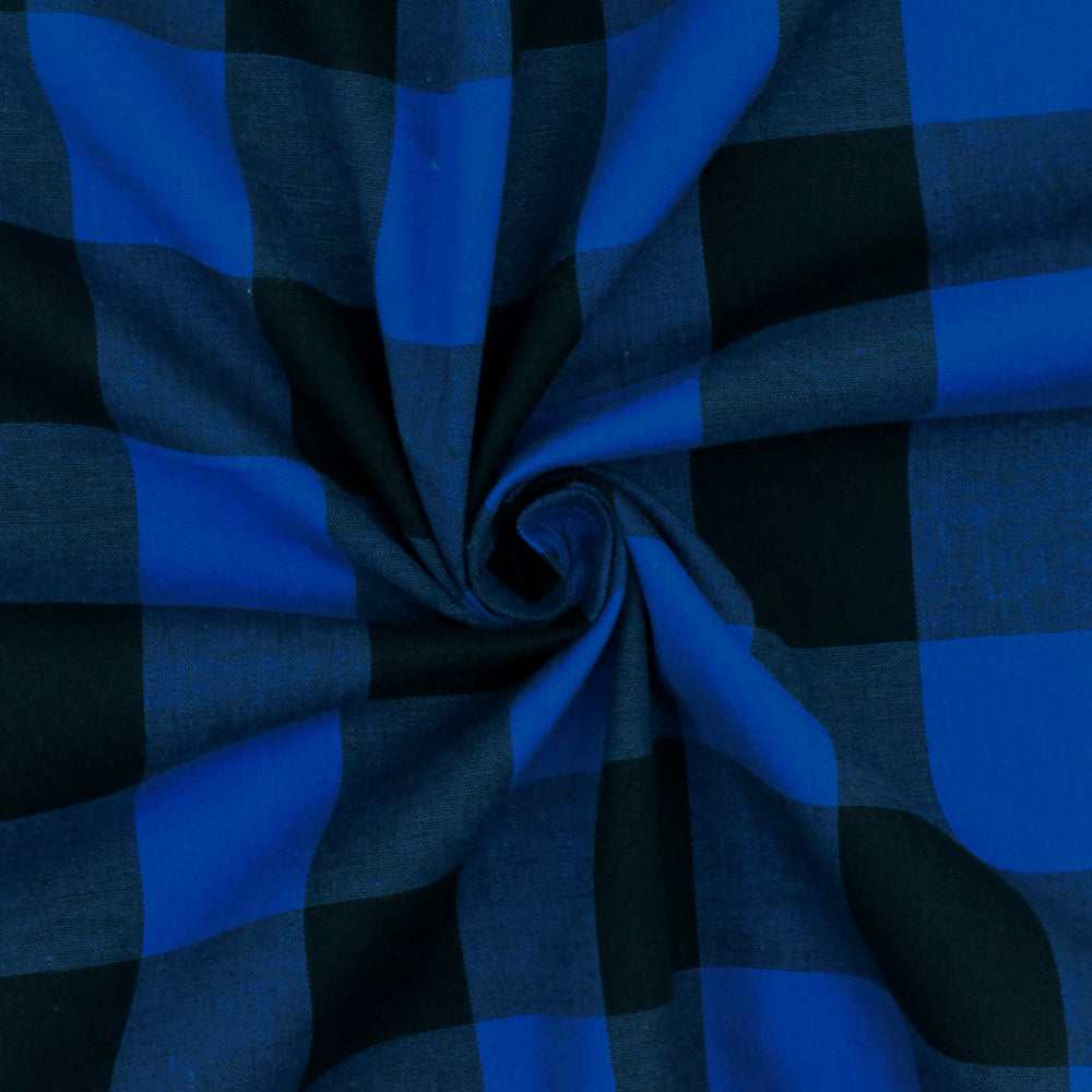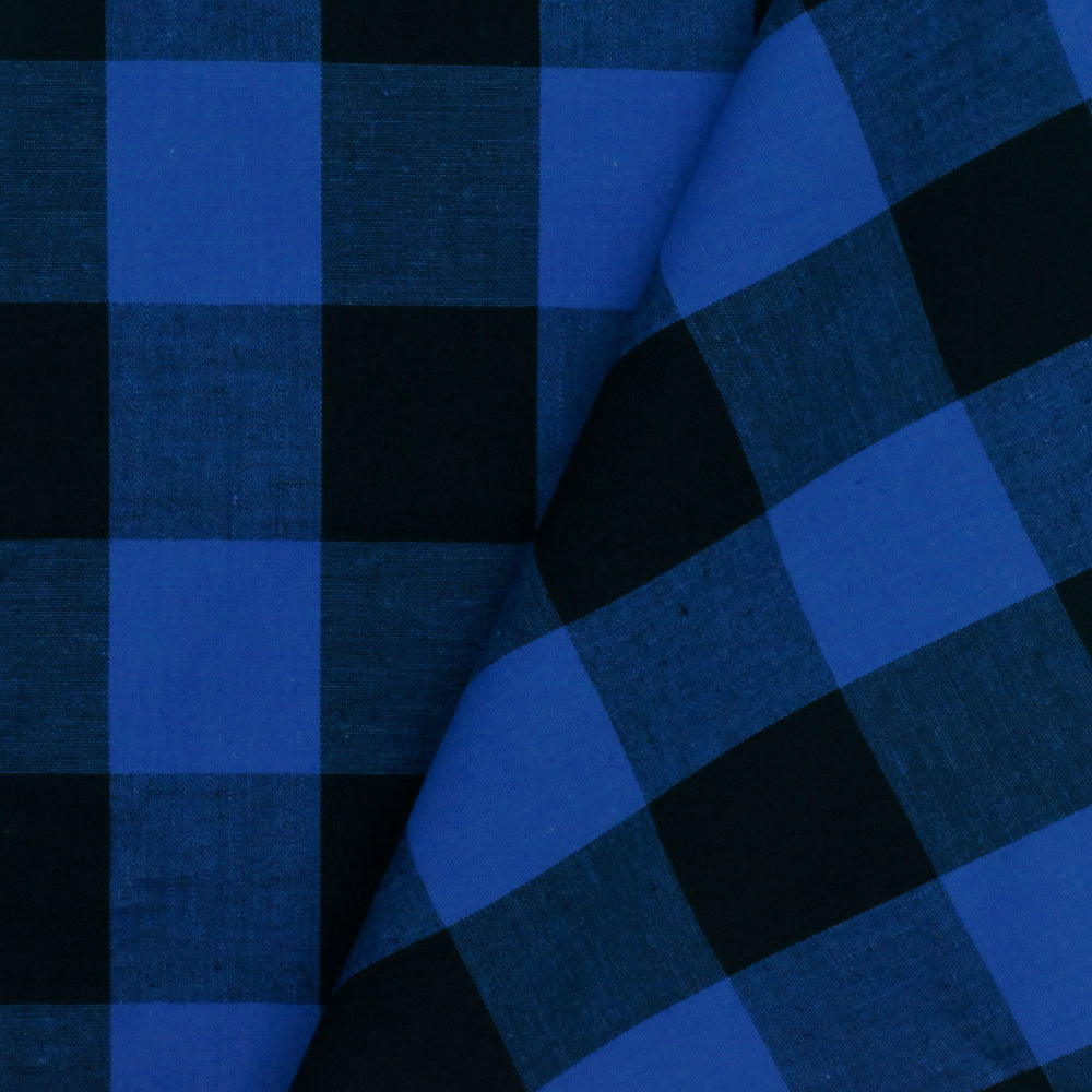 Cobalt Blue-Black Gingham Poplin Shirting Woven Fabric