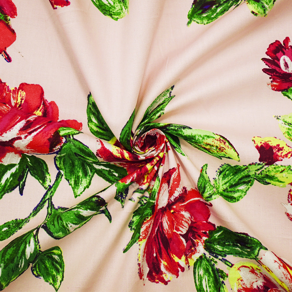 Light Pink-Multi Cotton Floral Print Stretch Spandex Poplin Woven Fabric