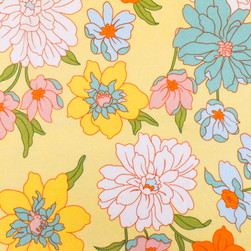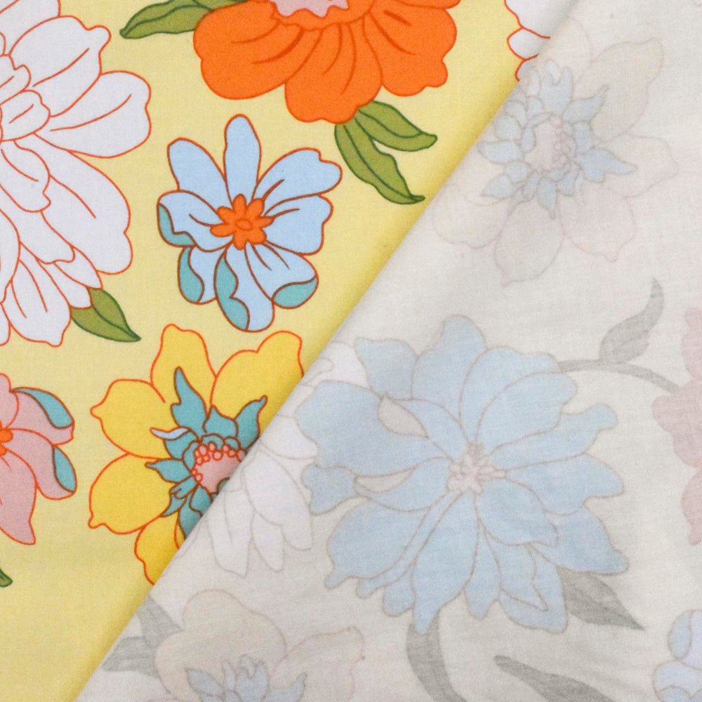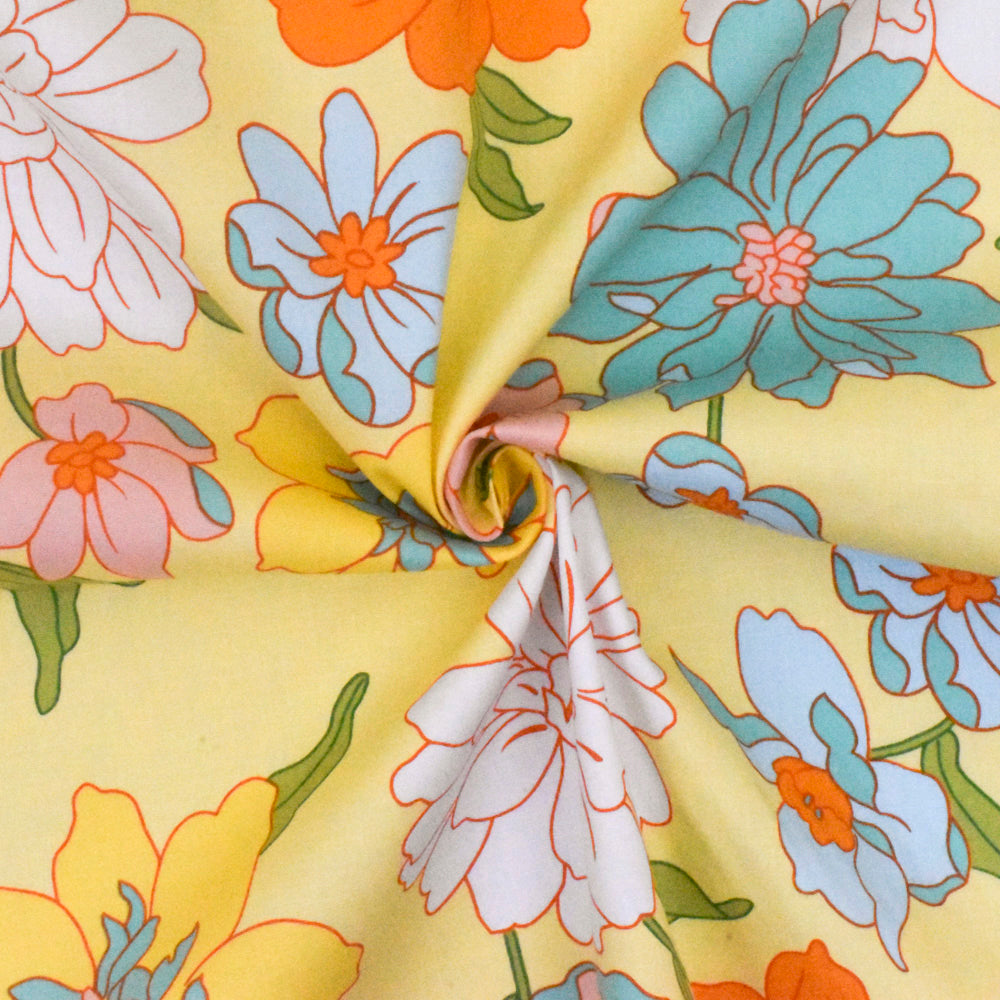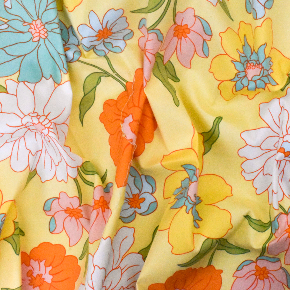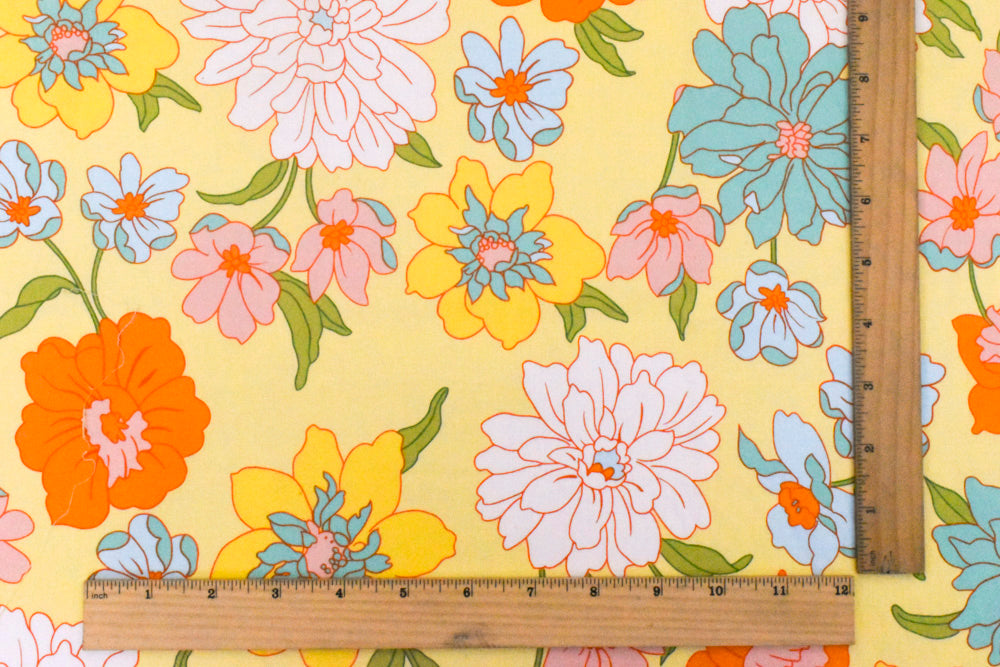 Milk Yellow-Pink-Multi Floral Printed Stretch Cotton Poplin Woven Fabric