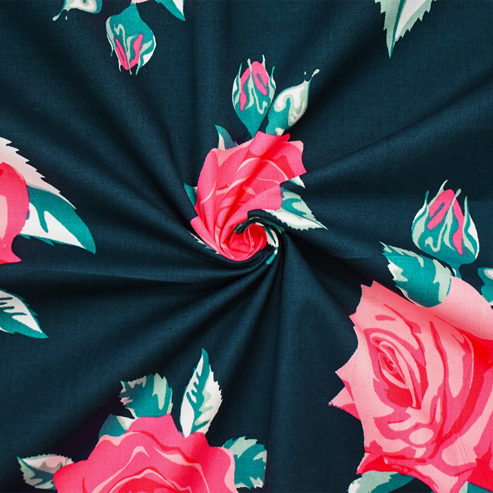 Navy-Pink-Multi Cotton Floral Printed Stretch Spandex Poplin Woven Fabric