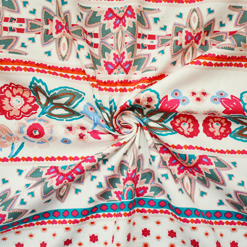 Red-Multi Cotton Stripe Floral Print Stretch Spandex Poplin Woven Fabric
