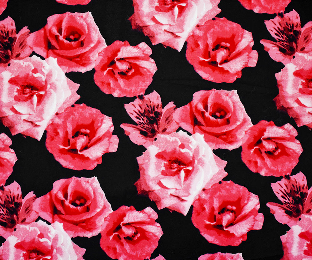 Red-Pink-Black Floral Printed Stretch Spandex Poplin Woven Fabric