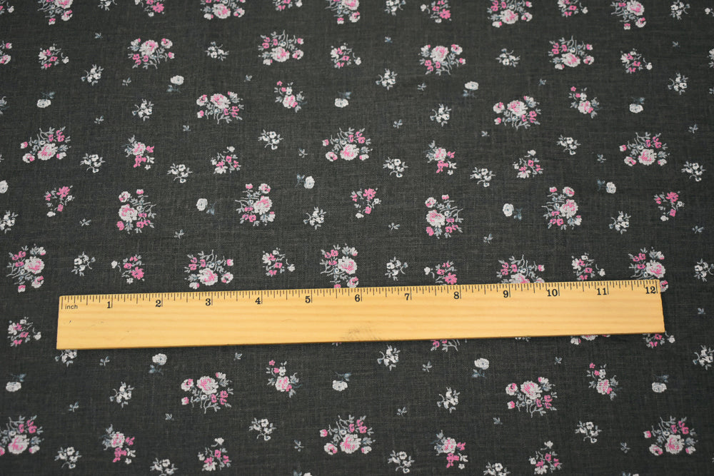 Ash Black-Pink-Multi Floral Ditsy Printed Linen Woven Fabric
