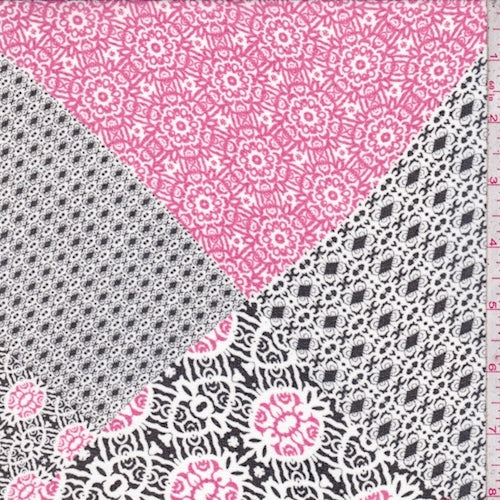 Black/Hot Pink Moroccan Patch Georgette Fabric