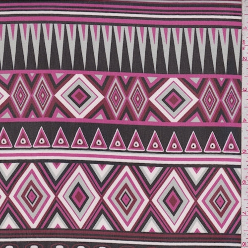 Black/Maroon Aztec Stripe Georgette Fabric