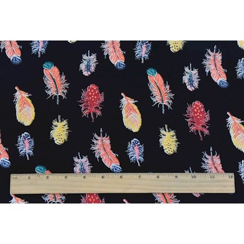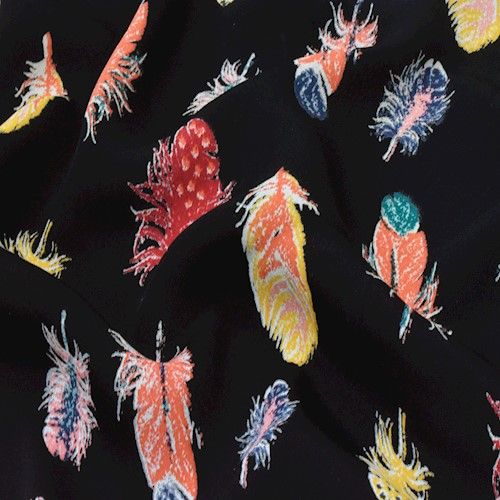 Black/Orange/Multi Feather Printed Crepe Faille Fabric