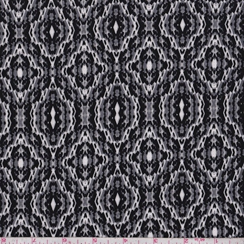 Black/Pewter Diamond Medallion Chevron Techno Crepe Knit Fabric