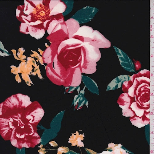 Black/Ruby/Pink Peony Double Brushed Jersey Knit Fabric
