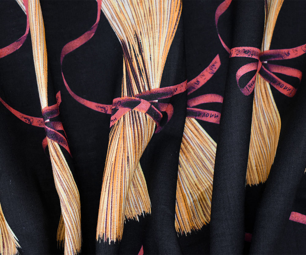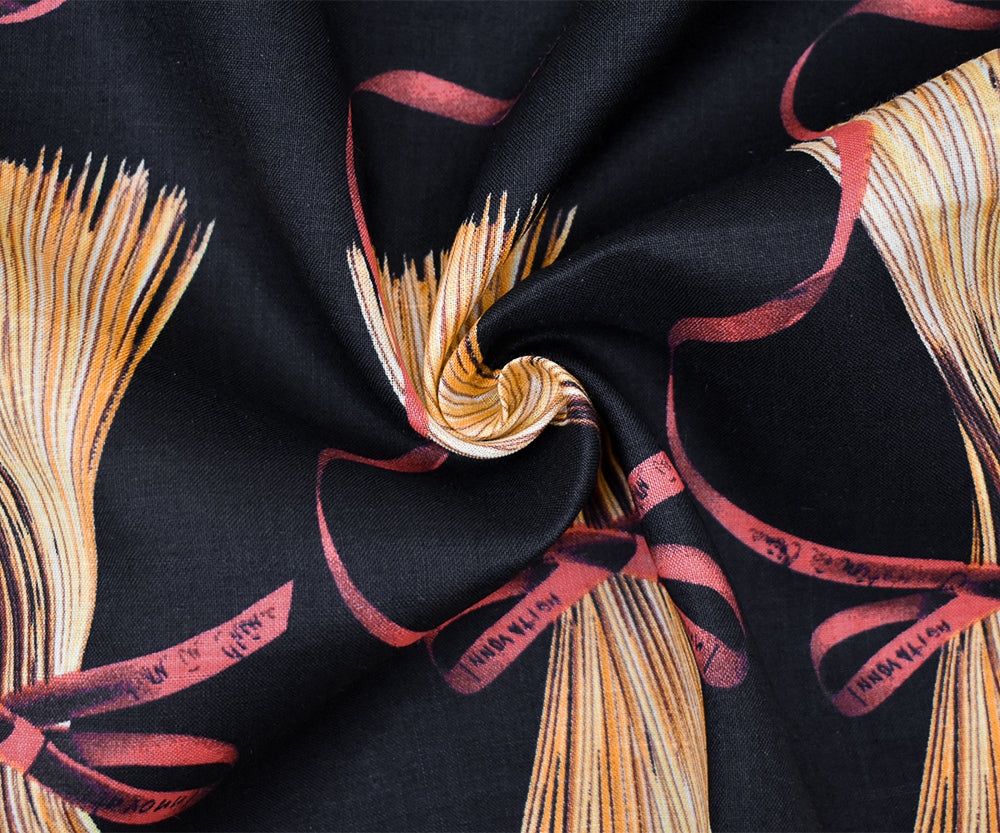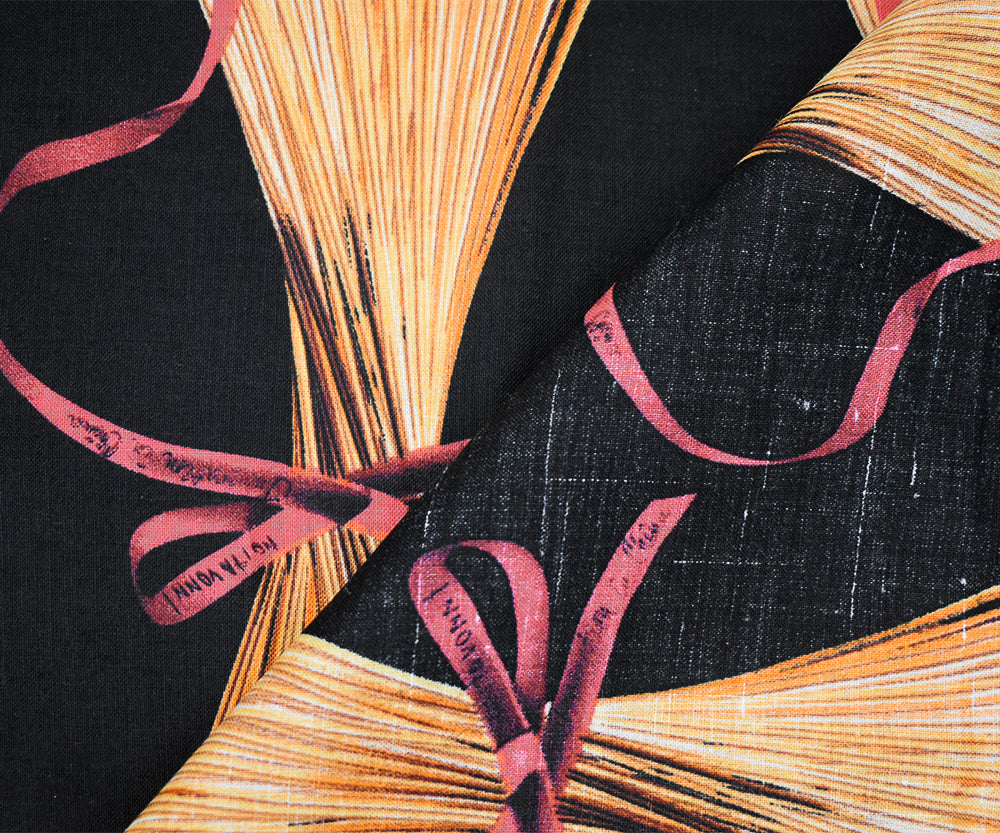 Black-Yellow-Red Ribbon Straw Printed Linen Woven Fabric