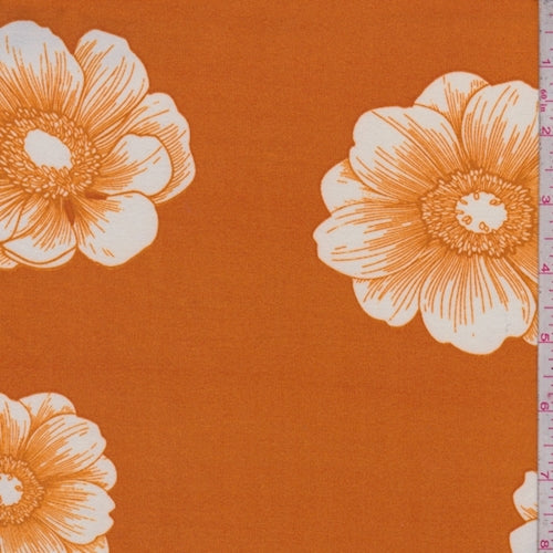 Dark Orange/White Floral Bloom Double Brushed Jersey Knit Fabric