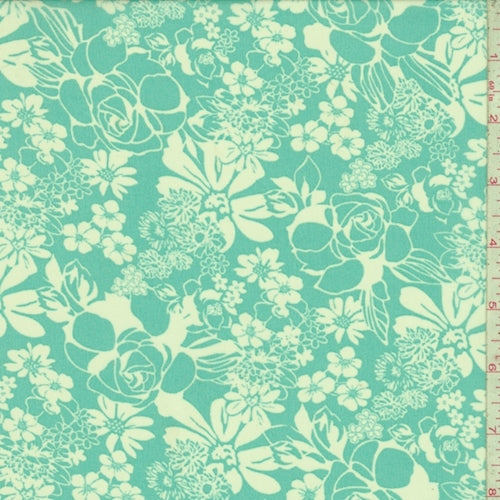 Dark Turquoise/White Floral Toss Chiffon Fabric