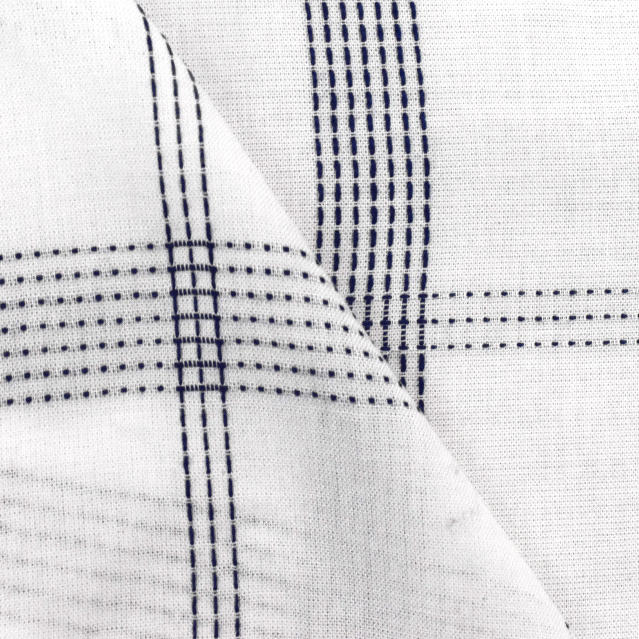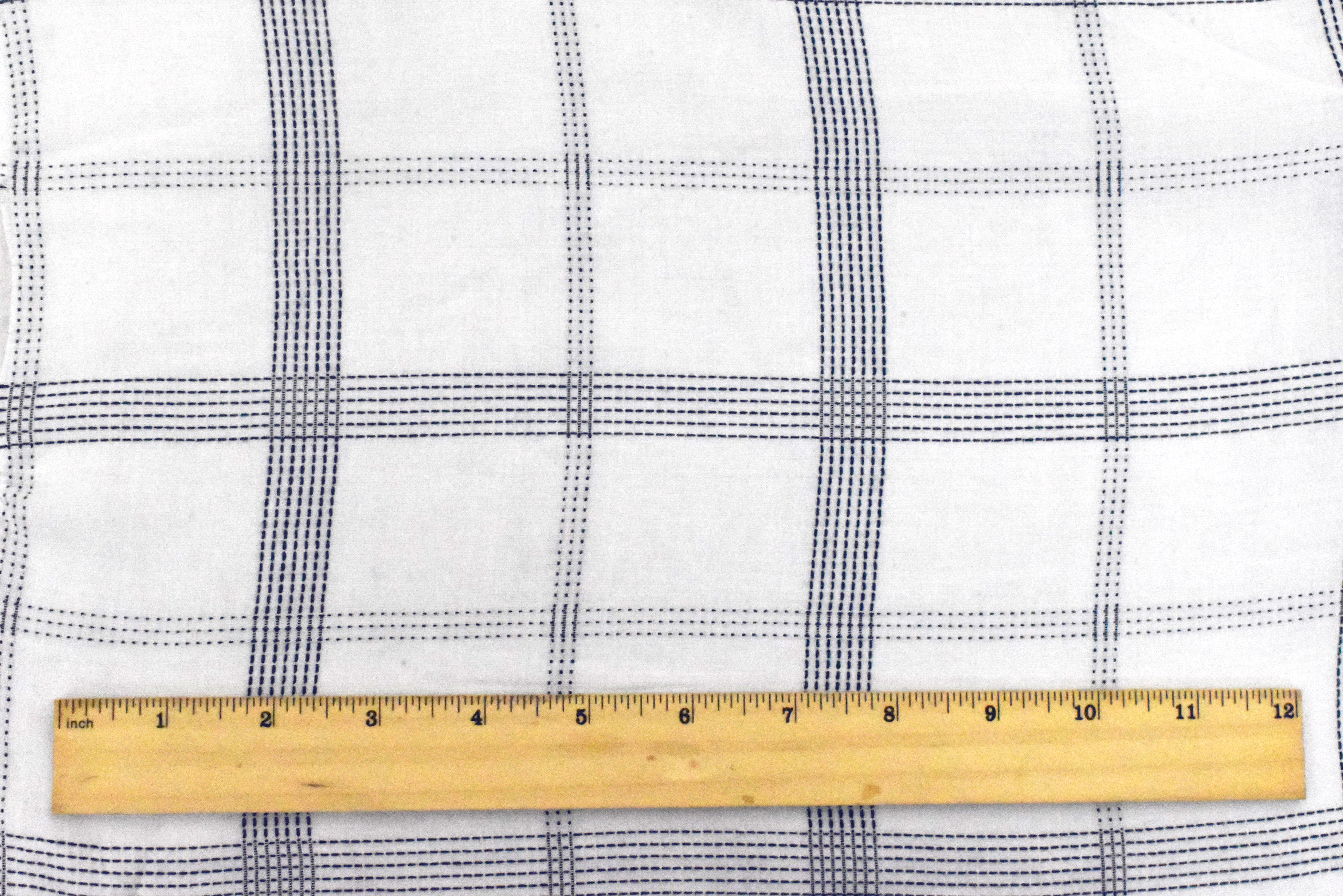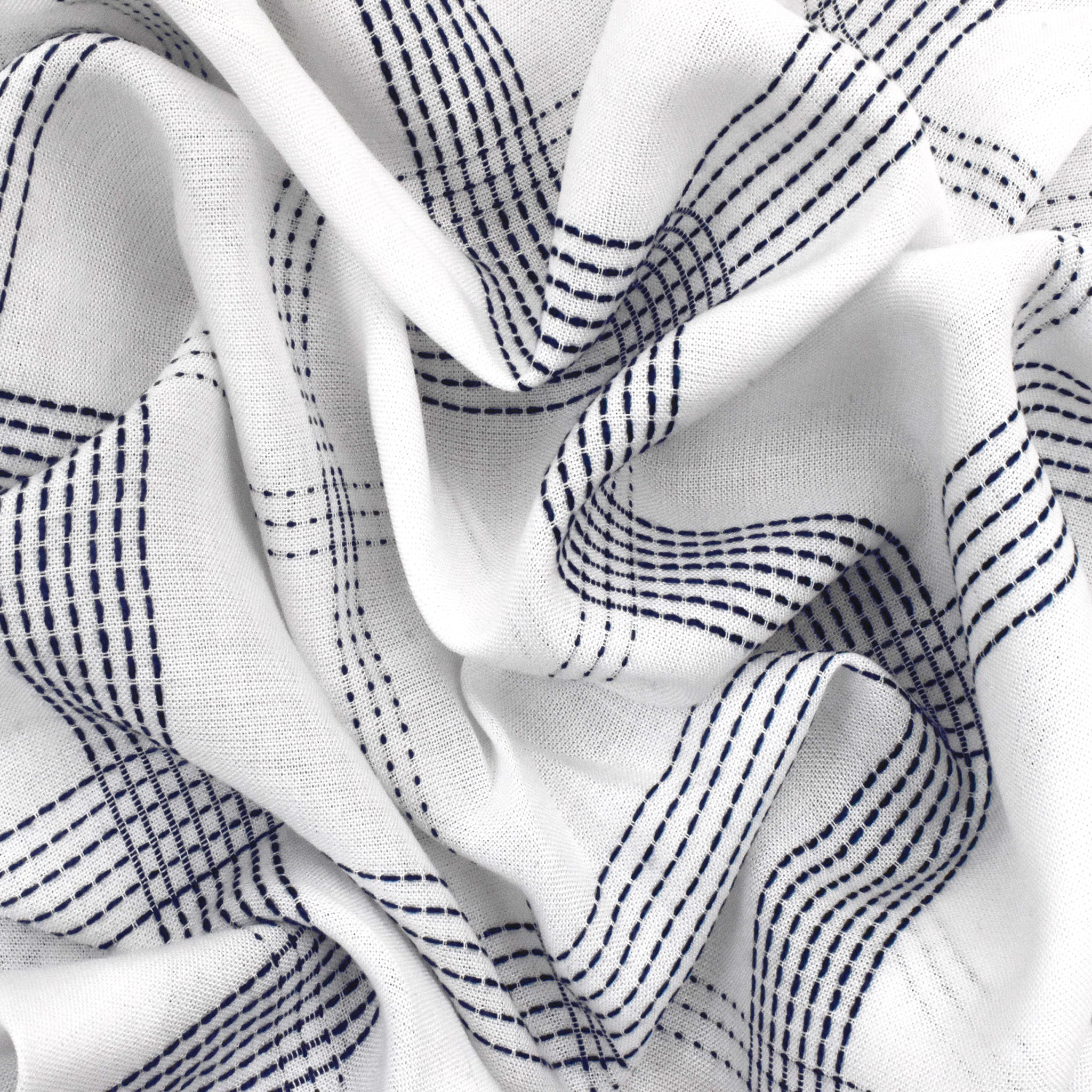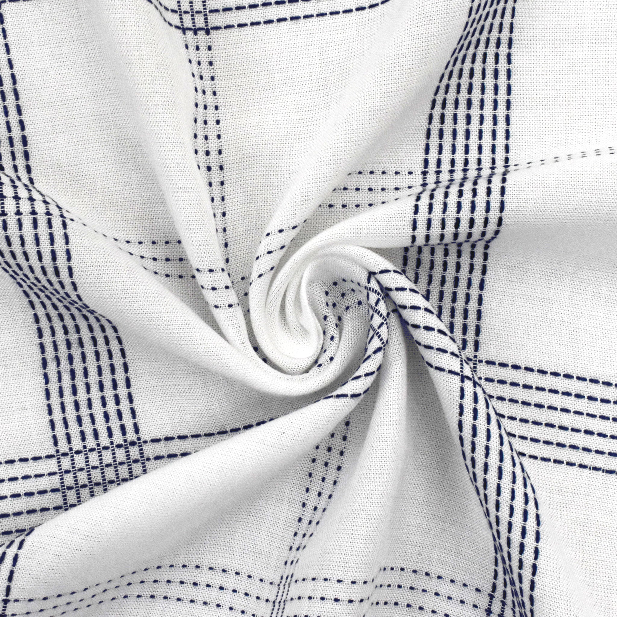Deep Blue-White Rayon Blend Stitched Plaid Lawn Fabric