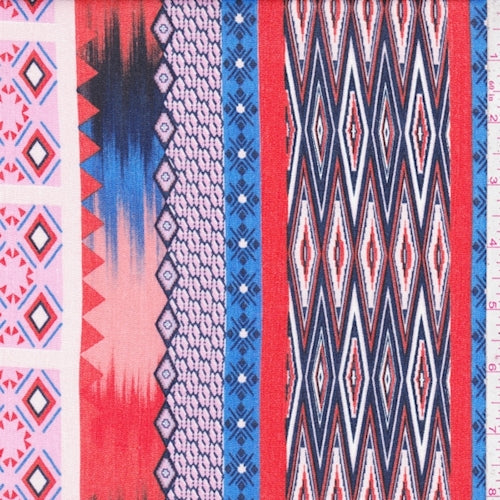 Fire Orange/Navy/Pink Deco Stripe Crepon Fabric