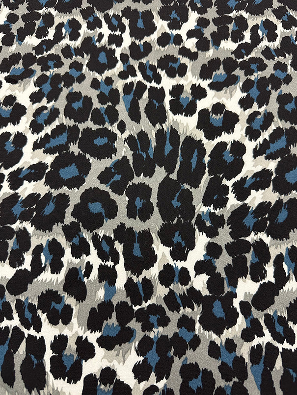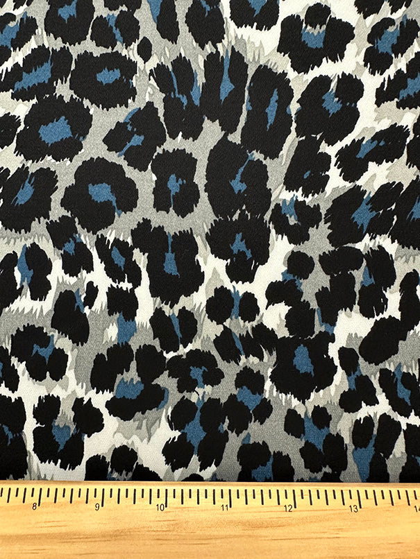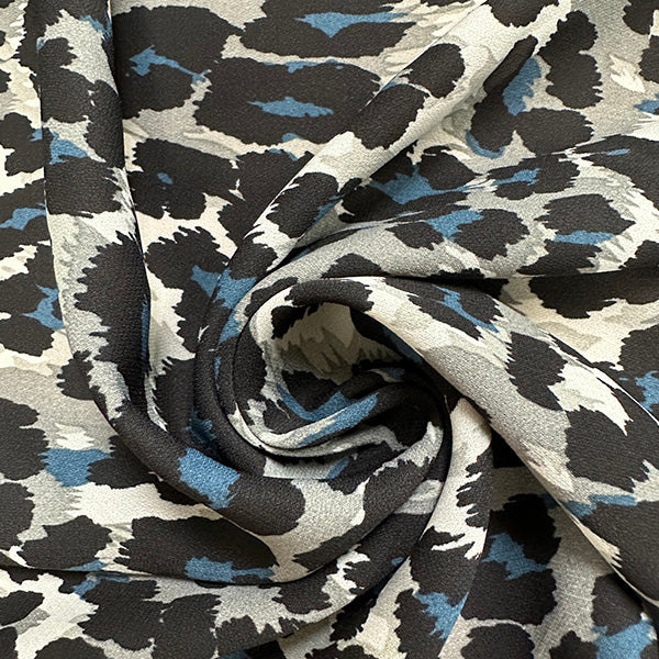 -Gray, Black, & Blue Multi Animal Print Poly Georgette Fabric
