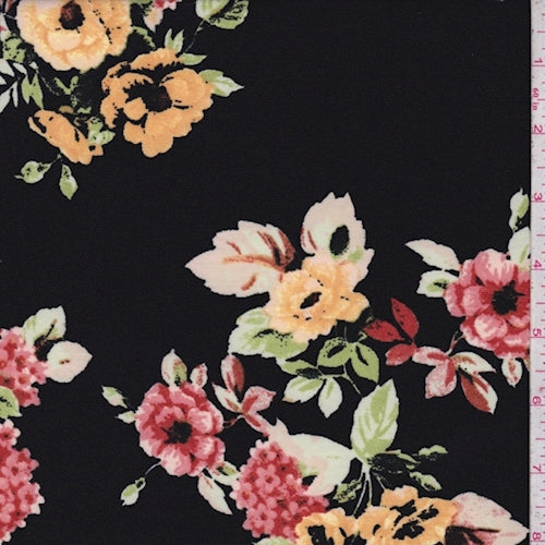 ITY Black/Rust Red Zinnia Jersey Knit Fabric