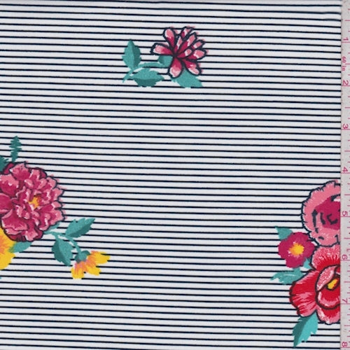 ITY White/Navy/Coral Floral Pinstripe Jersey Knit Fabric