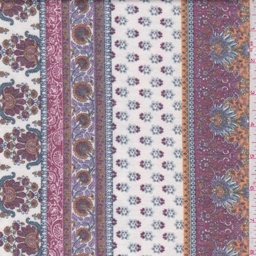 Ivory/Burgundy Stylized Stripe Brushed French Terry Knit Fabric