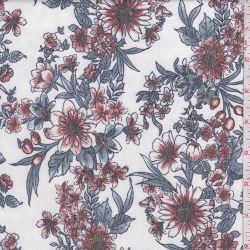 Ivory/Chestnut Floral Brushed French Terry Knit Fabric