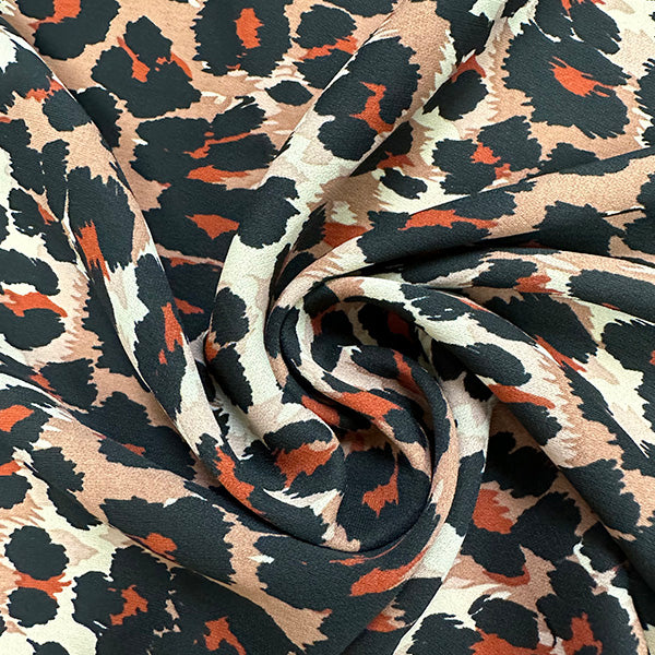 Light Brown Multi Animal Print Poly Georgette Fabric