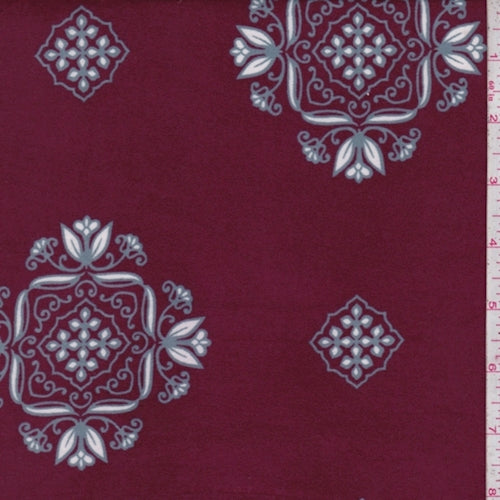 Merlot/Grey Square Medallion Double Brushed Jersey Knit Fabric