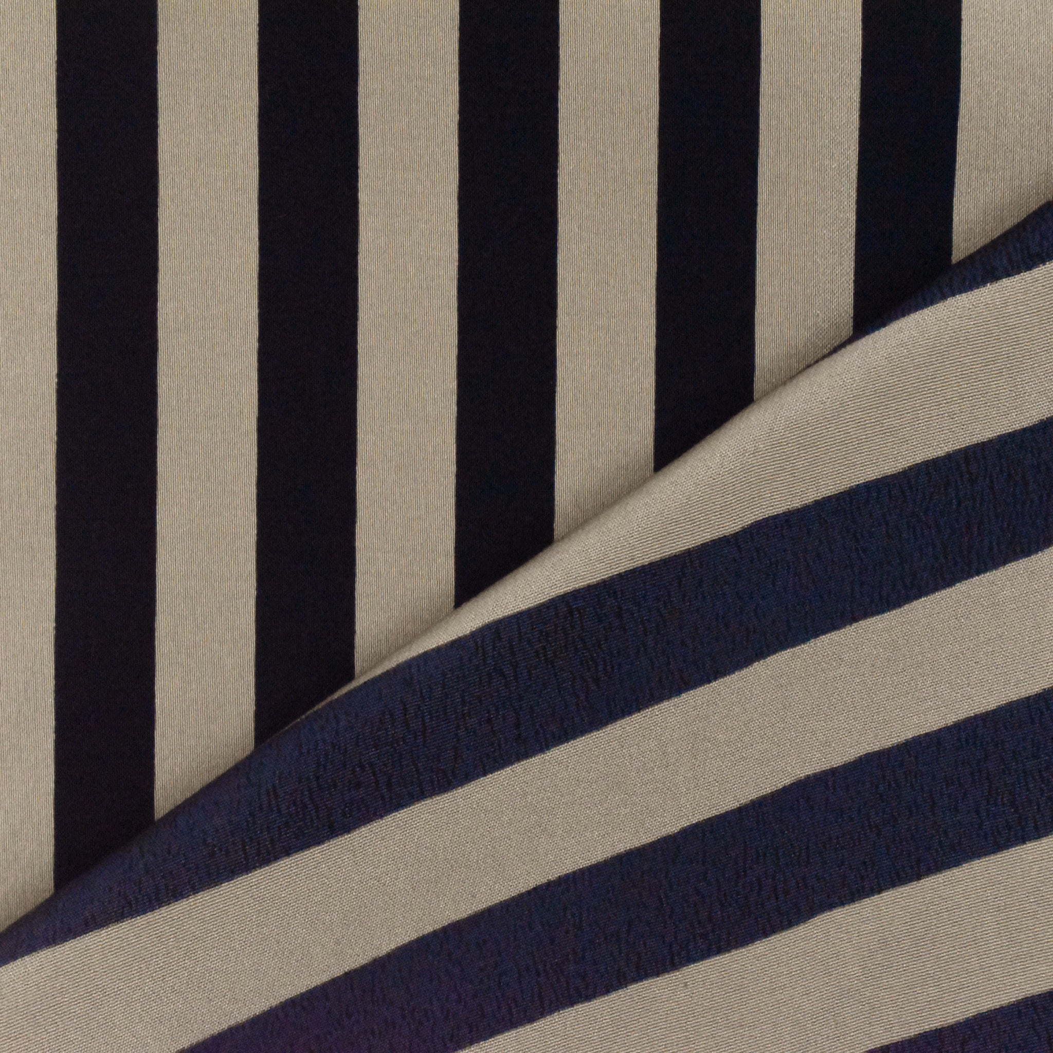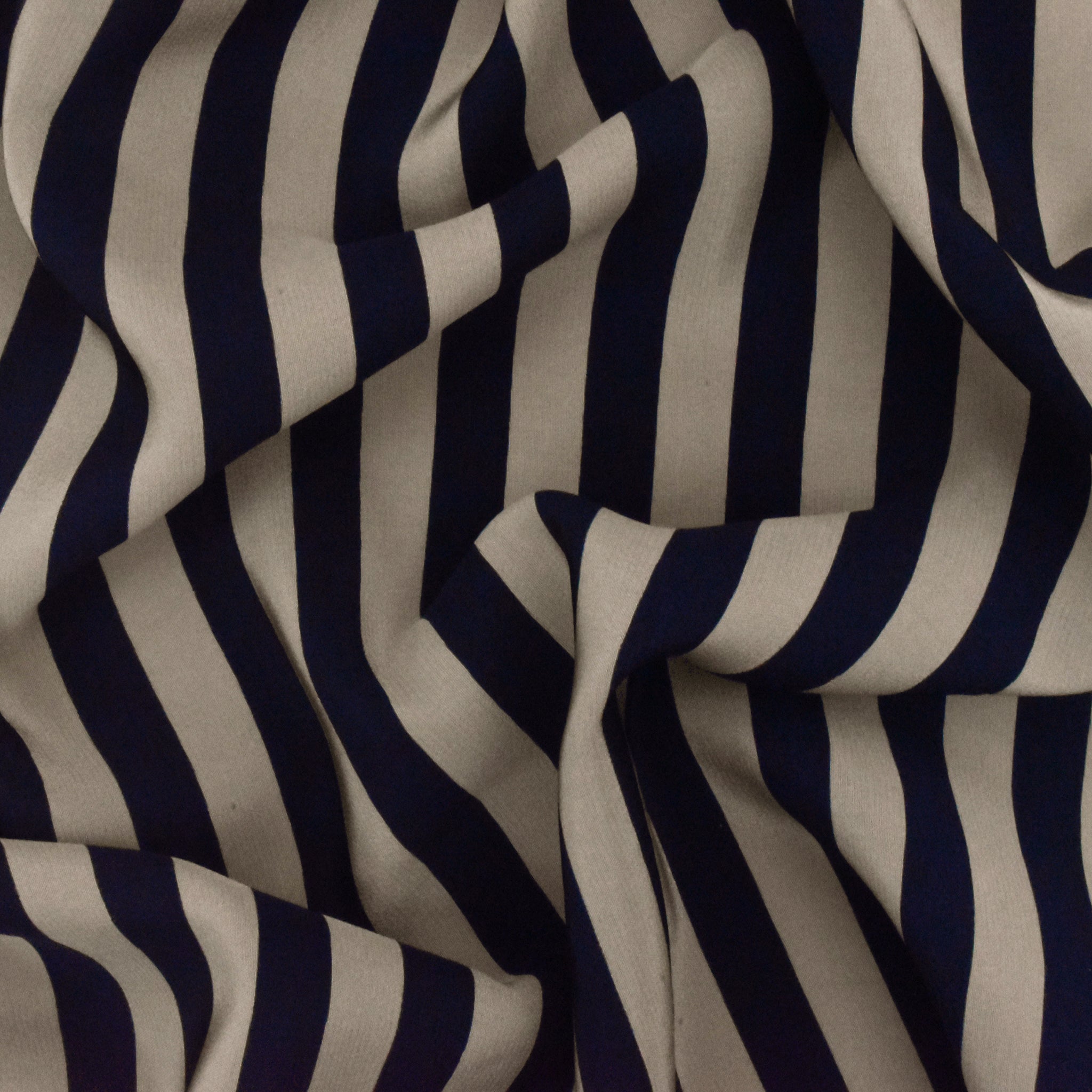 Navy Blue-Taupe Stripe Printed Silk Crepe De Chine Fabric