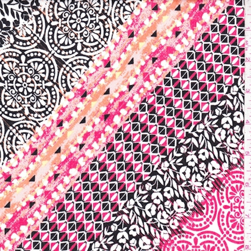 Red/Black/White Deco Diagonal Stripe Crepon Fabric
