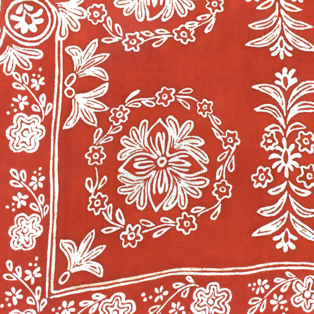 Red-Ivory-Orange Famous Designer Floral Print Rayon Georgette Fabric