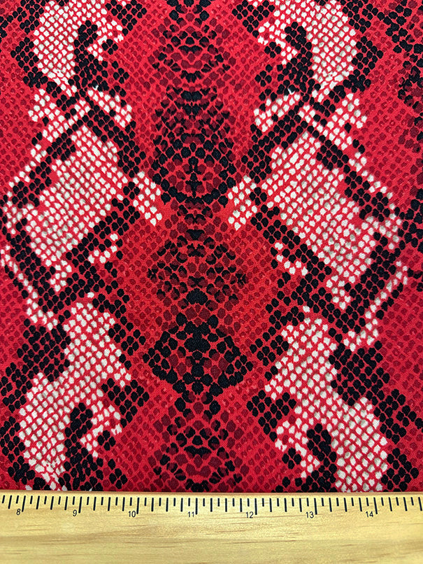 -Red, Black, & Beige Multi Snakeskin Animal Print Poly Georgette Fabric