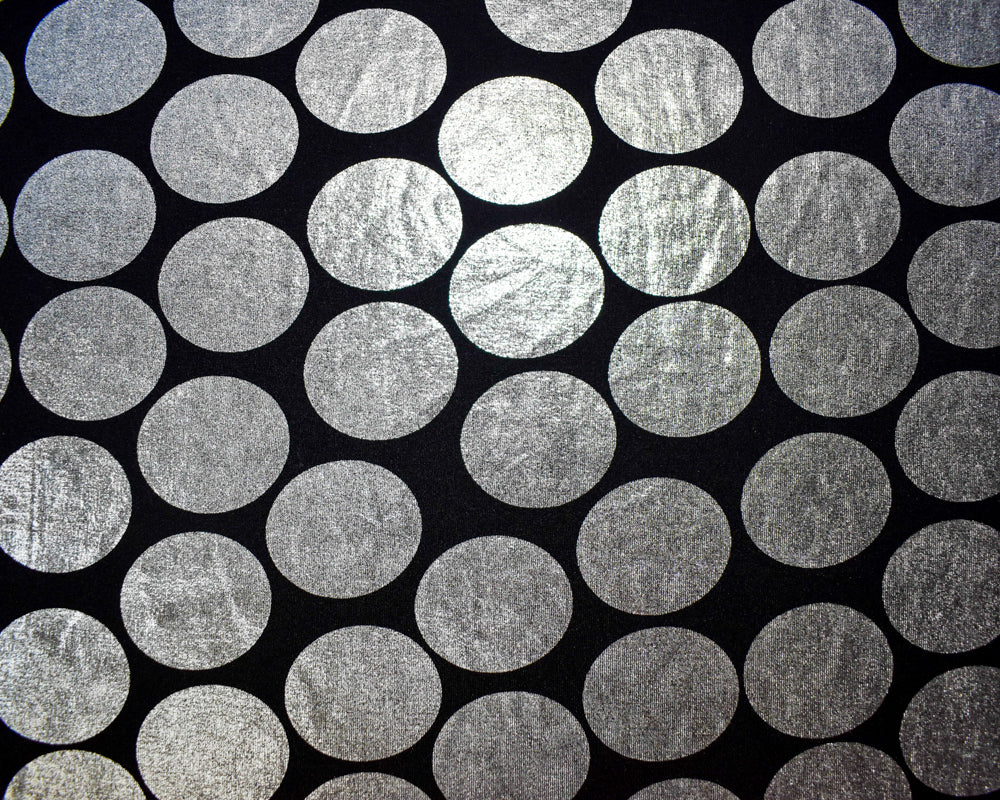 Silver-Black Poly Blend Spandex Foil Dot Printed Slinky Knit Fabric
