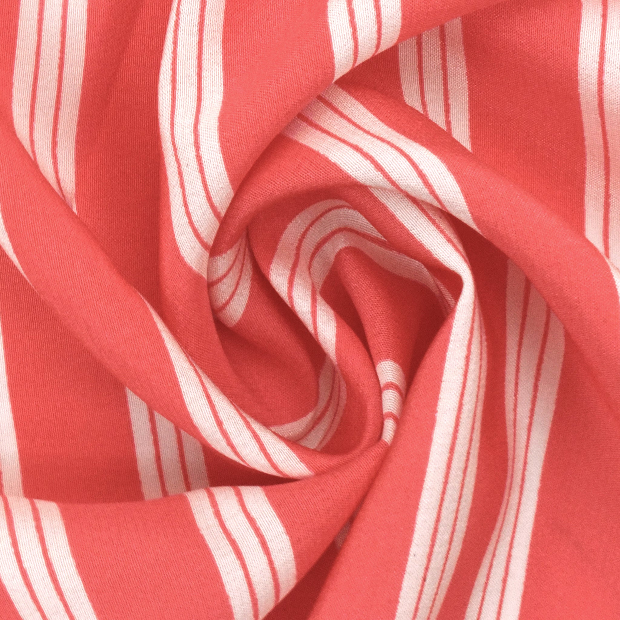 Watermelon Pink-Ivory Stripe Printed Silk Faille Woven Fabric