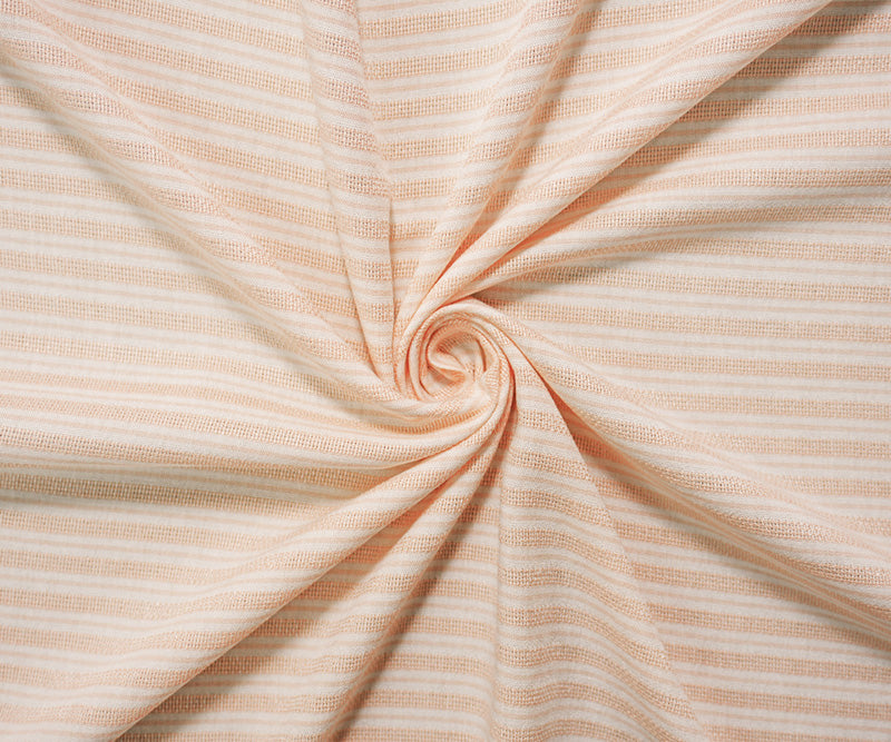 Beige-White Rayon Cotton Stripe Dobby Woven Fabric