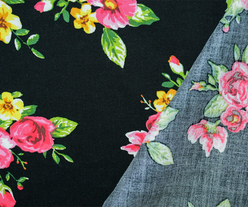 Black-Pink-Multi Rayon Floral Printed Batiste Woven Fabric